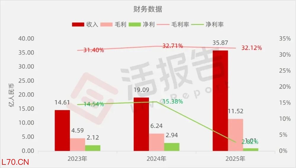 收入分别约为人民币14.61亿、19.09亿、35.87亿,2025年同比+87.91%;