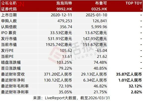 泡泡玛特(9992.HK)、布鲁可(0325.HK)。