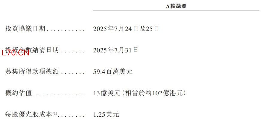 在2025年7月的A轮融资中,公司的上市前估值约为13亿美元(102亿港元),每股优先股成本约为1.25美元。