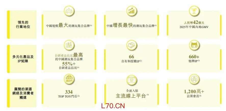 ]article_adlist-->公司是中国规模最大、增速最快的潮玩集合品牌。2025年,公司于中国内地实现GMV人民币42亿元,其中自研产品收入占比超55%,根据弗若斯特沙利文,为中国潮玩集合品牌中最高。