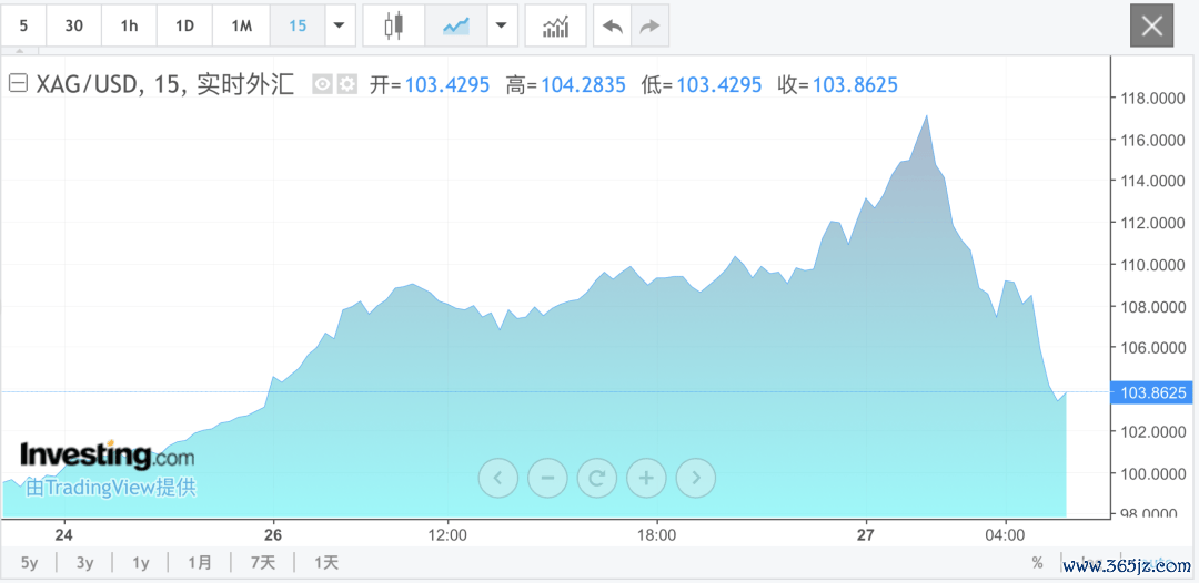 贵金属市场上演巨震,现货白银价格日内一度大涨超14%,但在美股收盘后不久,现货白银几乎回吐了当天全部涨幅,随后仅出现非常有限的反弹,当日最终涨幅不到1%。