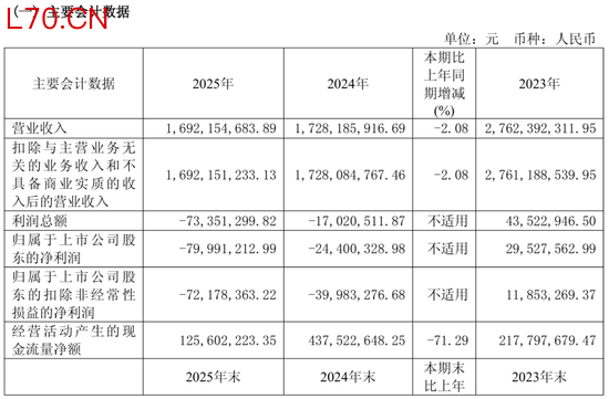 2025年丽人丽妆营收约16.92亿元,同比减少2.08%;归母净利润约-7999.12万元,较上年同期亏损面进一步扩大227.83%。经营活动产生的现金流净额约1.26亿元,同比减少71.29%。分季度看,2025年第一季度至第四季度,分别亏损1832.2万元、1443.77万元、373.24万元、4349.91万元。提及目前是否存在资金压力,丽人丽妆方面表示,资金情况还可以,“账上还有(资金)”,并补充道,“求稳”最重要。
