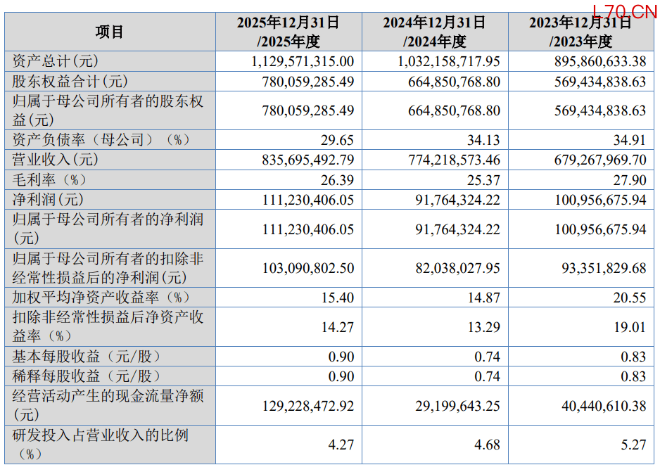 2023年至2025年,新恒泰的营业收入分别为67,926.80万元、77,421.86万元和83,569.55万元;净利润/归属于母公司所有者的净利润分别为10,095.67万元、9,176.43万元和11,123.04万元;归属于母公司所有者的扣非净利润分别为9,335.18万元、8,203.80万元和10,309.08万元。