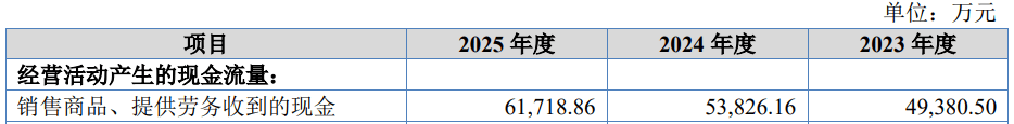 上述同期,公司销售商品、提供劳务收到的现金分别为49,380.50万元、53,826.16万元和61,718.86万元,经营活动产生的现金流量净额分别为4,044.06万元、2,919.96万元和12,922.85万元。