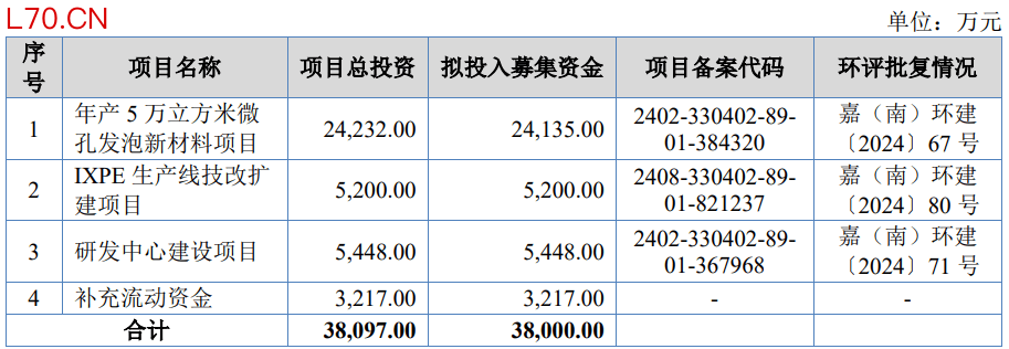 元股证券新恒泰本次发行募集资金总额为38,624.60万元,扣除发行费用(不含税)后的募集资金净额为33,465.23万元,比原计划少4,534.77万元。新恒泰2026年3月9日披露的招股书显示,公司拟募集资金38,000.00万元,用于年产5万立方米微孔发泡新材料项目、IXPE生产线技改扩建项目、研发中心建设项目、补充流动资金。